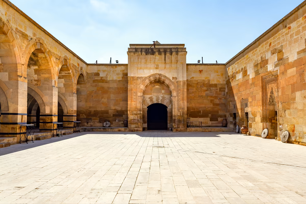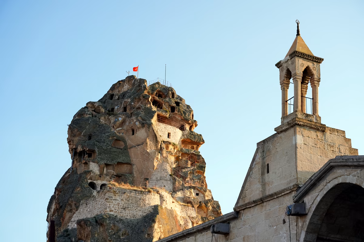 Optional early morning hot air balloon flight, offering an aerial perspective over Cappadocia’s valleys, fairy chimneys, and volcanic formations. Later, begin at Uchisar Castle, the region’s highest natural viewpoint, providing an overview of Cappadocia’s settlement patterns and valley systems. Continue to a panoramic stop in Love Valley, followed by a walk through Paşabağ, where fairy chimneys can be explored up close, illustrating the region’s geological formation. Visit Saruhan Caravanserai, a well-preserved Seljuk-era inn and a key example of medieval Anatolian trade routes. Lunch is taken in Avanos, followed by a traditional pottery workshop reflecting the town’s artisan heritage. The day concludes at Devrent Valley, known for its naturally sculpted rock formations. Overnight in Cappadocia.