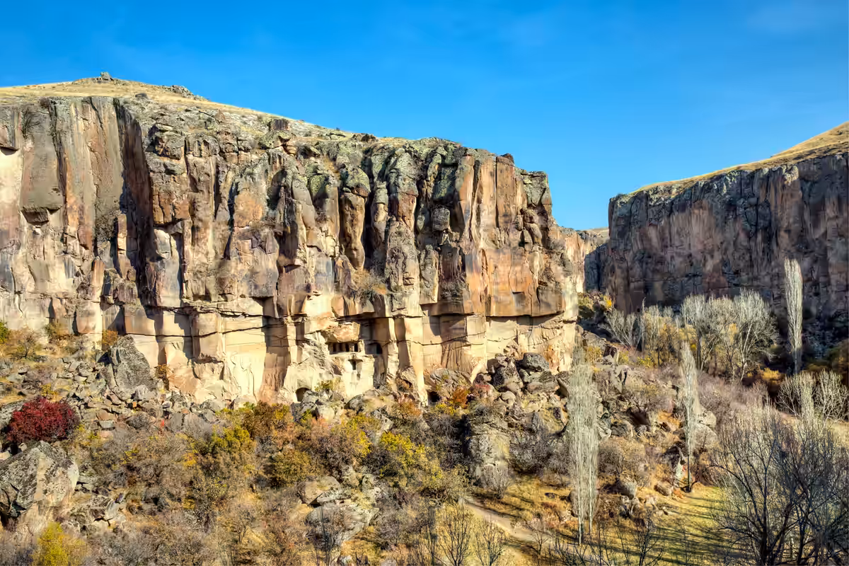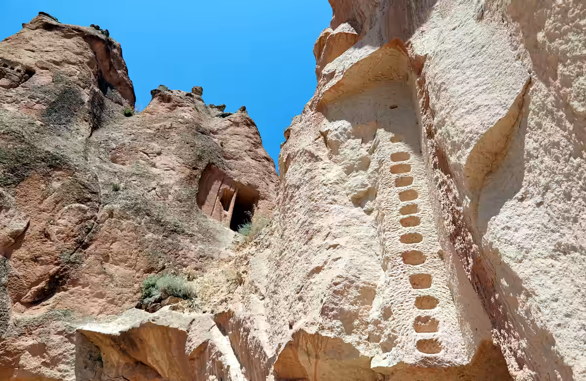 Cycle to Selime via Alanyurt. Enter Ihlara Canyon, riding to Belisırma for lunch. After lunch, continue biking or hiking through the second section of the canyon to Ihlara Village. For those who prefer to walk, bicycles can be transported by the support vehicle. After Ihlara, ride 35 km to Ulukışla, crossing Küçük Hasan Mountain via a mountain pass. The route includes a long uphill section of approximately 20 km, followed by a significant downhill. Meet the support vehicle in Ulukışla and transfer back to Ürgüp. Dinner and overnight in Ürgüp.